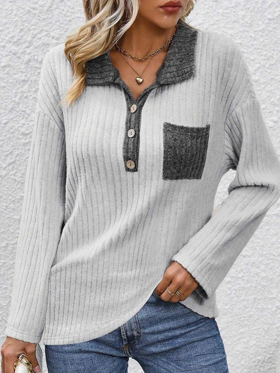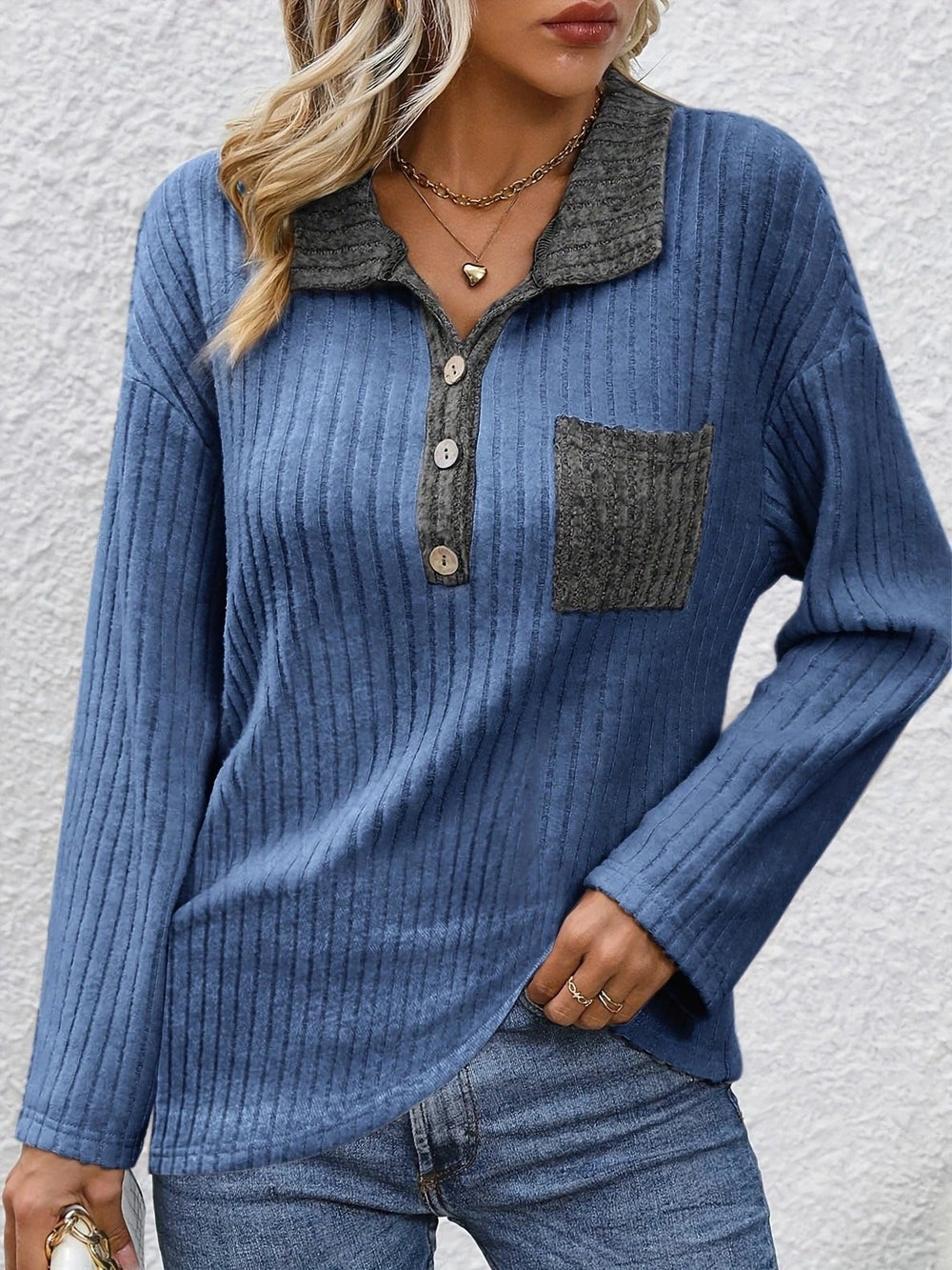 Yanna - ファッションピットストライプポロカラーボタントップ