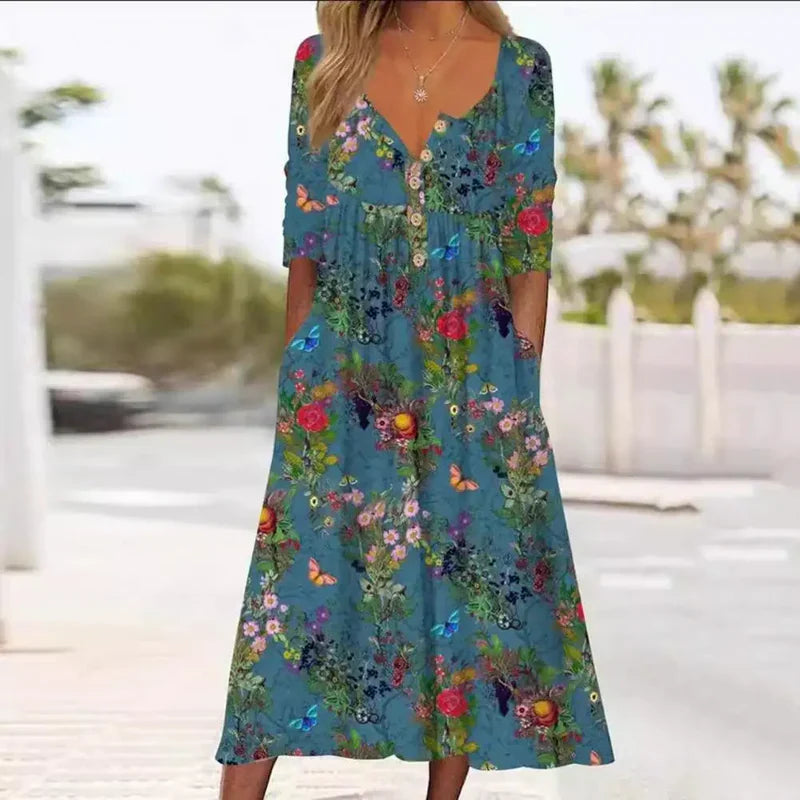 Elvina - フローラルプリントの2ピースミディドレス