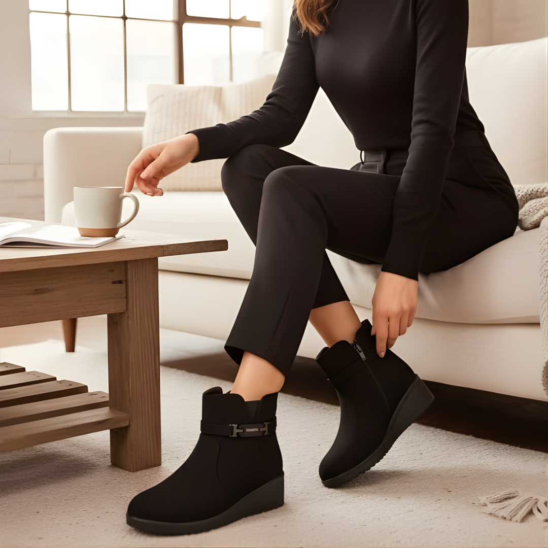 軽量ウェッジサポート:アルワラブーツは、快適さを損なわずに高さを加える控えめなウェッジソールが特徴です。安定したバランスの取れた履き心地で、足や脚への負担を軽減します。この軽量デザインは、一日を通してより良い姿勢を促進します。