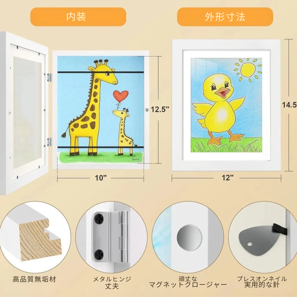 ✅大切な思い出を保存:お子様の作品は特別です。このフレームは、お子様の傑作を保護します。耐久性のある前面パネルが、作品をほこりや指紋、不慮の破れから守り、何年も大切に保管できます。創造的な瞬間を保存するのに最適な方法です。