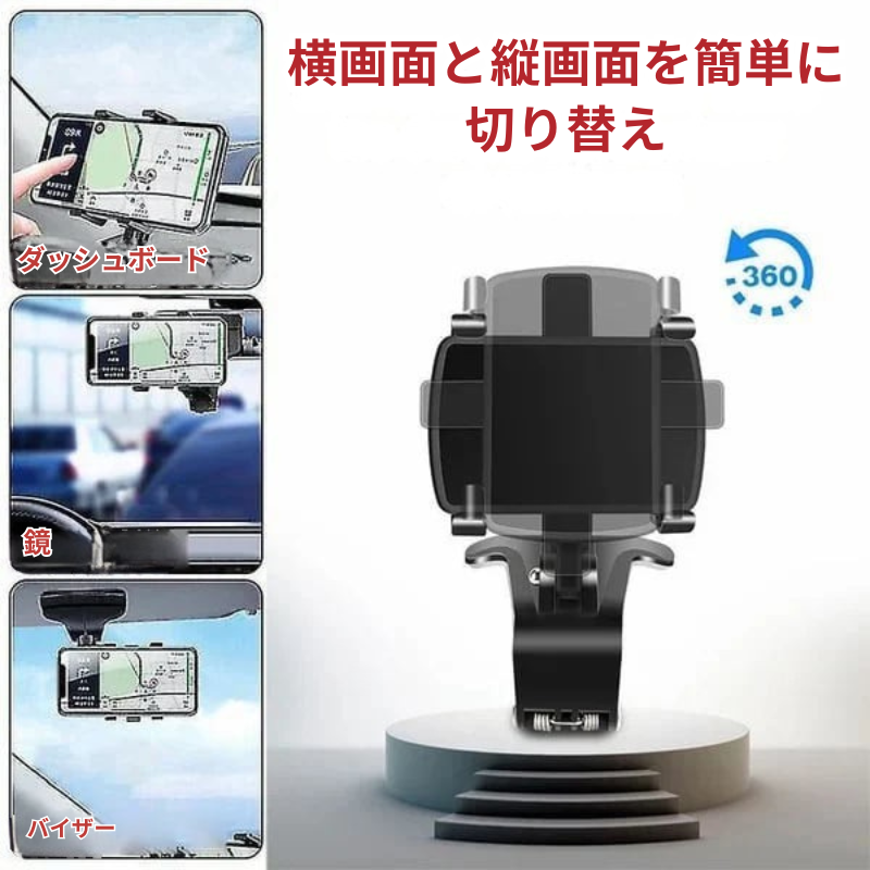 360°調整可能な視野角:完璧な視野角を得るために、フル回転をお楽しみください。縦向きまたは横向きモードのどちらを好むかに関わらず、DriveHoldはニーズに合わせてスマートフォンを調整できます。ナビゲーション、通話、音楽を簡単に操作できる状態で、道路に集中し続けましょう。