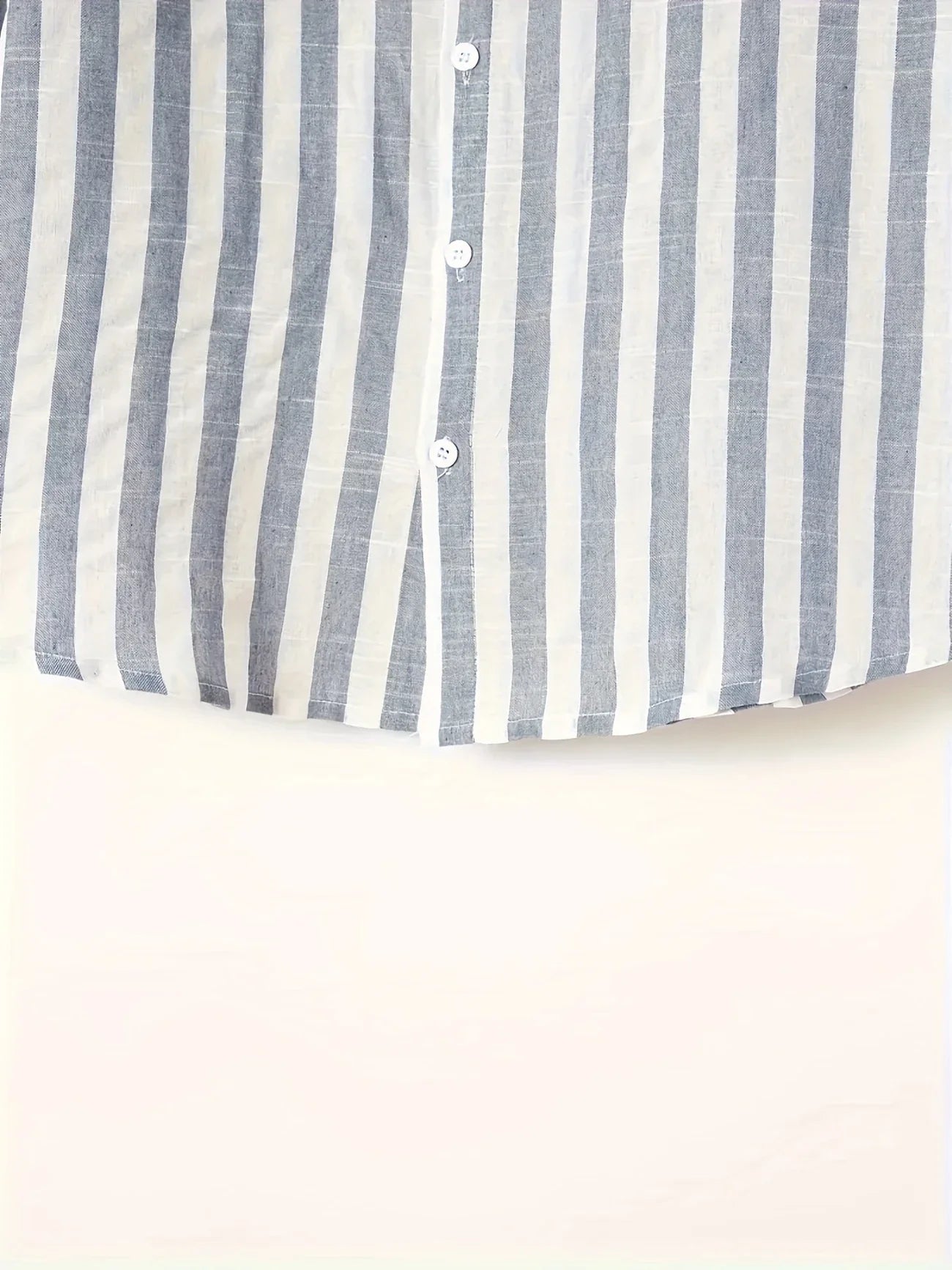 太い縦ストライプで自信あふれるスタイル: ジョージシャツは、目立つ縦ストライプが特徴で、単に目立つだけでなく、スリムで縦長のシルエットを演出します。このクラシックなパターンは、どんなワードローブにも洗練されたトレンド感を加えます。派手すぎず、存在感を演出したい男性にぴったりのアイテムです。