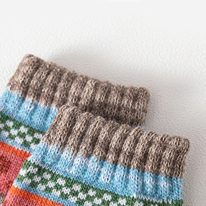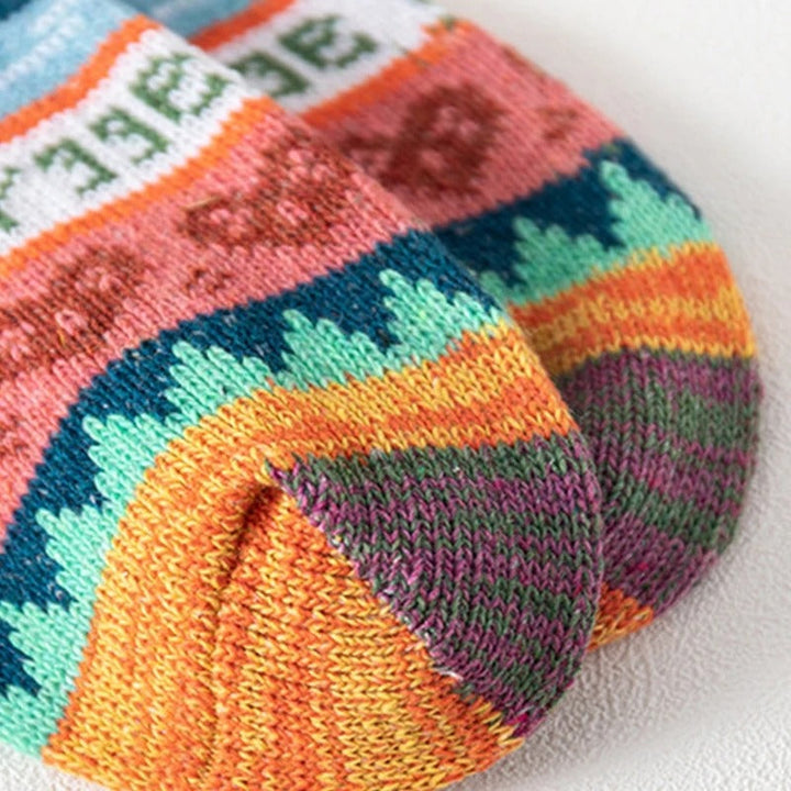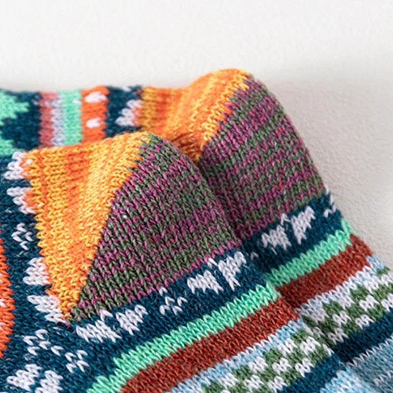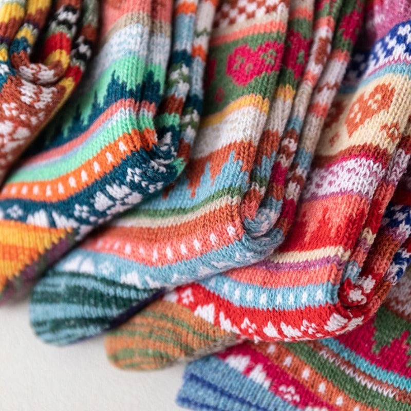 ✅スタイリッシュなノルディック柄とボヘミアン柄 : カラフルで複雑な柄のソックスは、冬のワードローブにスタイリッシュさをプラスします。お家でくつろぐ時も、お出かけする時も、このユニークなボヘミアン調のデザインは、あなたの装いに楽しくファッショナブルなアクセントを加えます。
