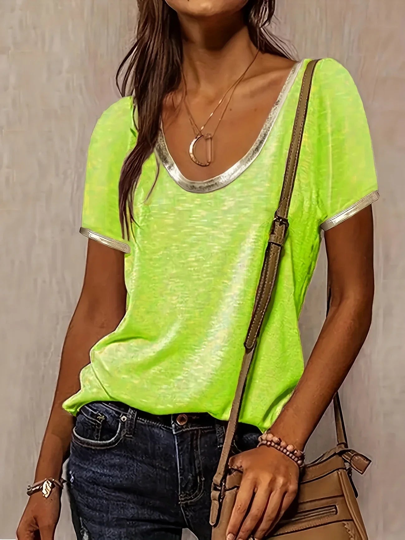 ✅スタイリッシュなデザイン:クリッシーTシャツは、トレンディなクルーネックと鮮やかなカラーバリエーションが魅力で、カジュアルな外出にぴったりのファッショナブルなアイテムです。ユニークなカラーアクセントが個性を引き立て、手軽に自分らしいスタイルを表現できます。ショートパンツ、ジーンズ、スカートと合わせやすいアイテムです。