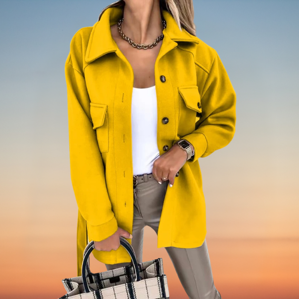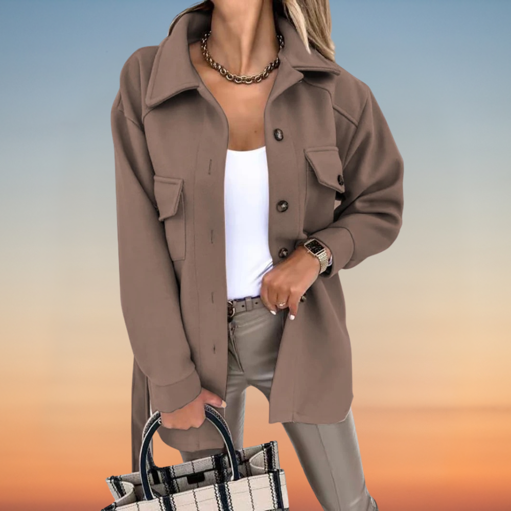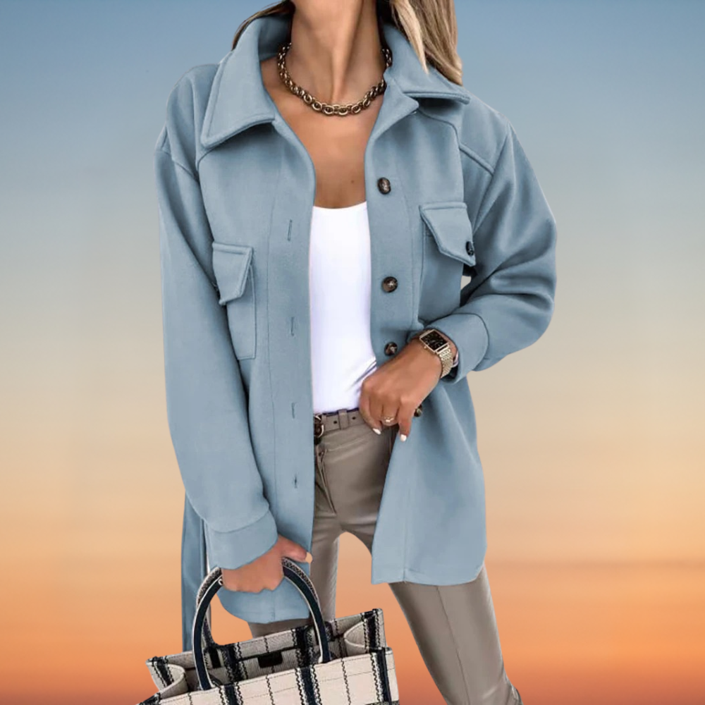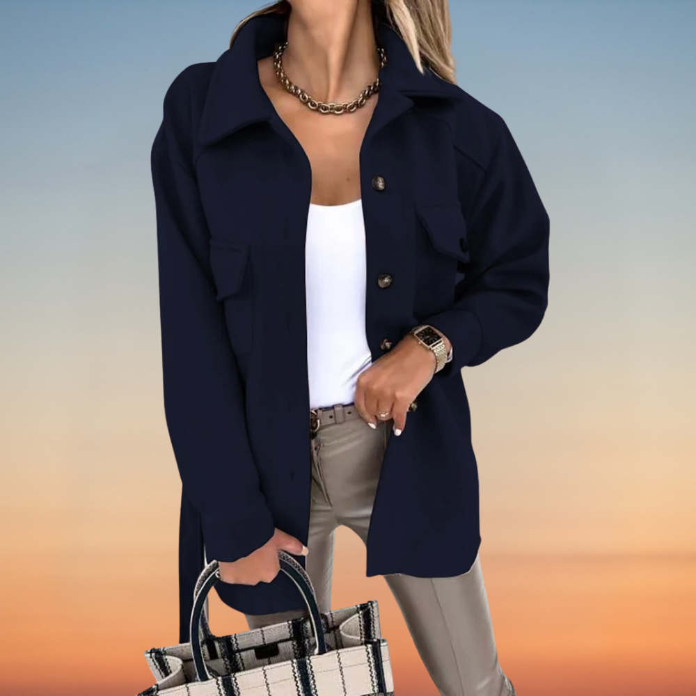 ✅日常使いに最適な機能性:Kristelジャケットには、フロントボタンや大きめのポケットなど、実用的な要素が備わっています。これらのディテールは利便性とスタイル性を兼ね備え、外出時に小物を収納するのも簡単です。