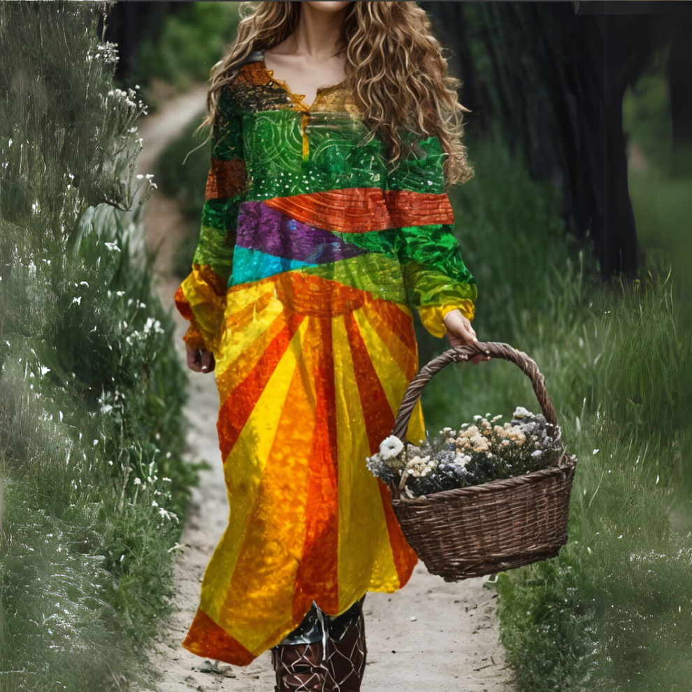 ✅エフォートレスなボーホーの魅力 : マッジ・ドレスは、夢のような花柄プリントとリラックスしたシルエットで、気ままなボヘミアンスタイルのエッセンスを取り入れている。アーティスティックな柄と流れるようなフィット感で、ヴィンテージとモダンの完璧な融合を実現。