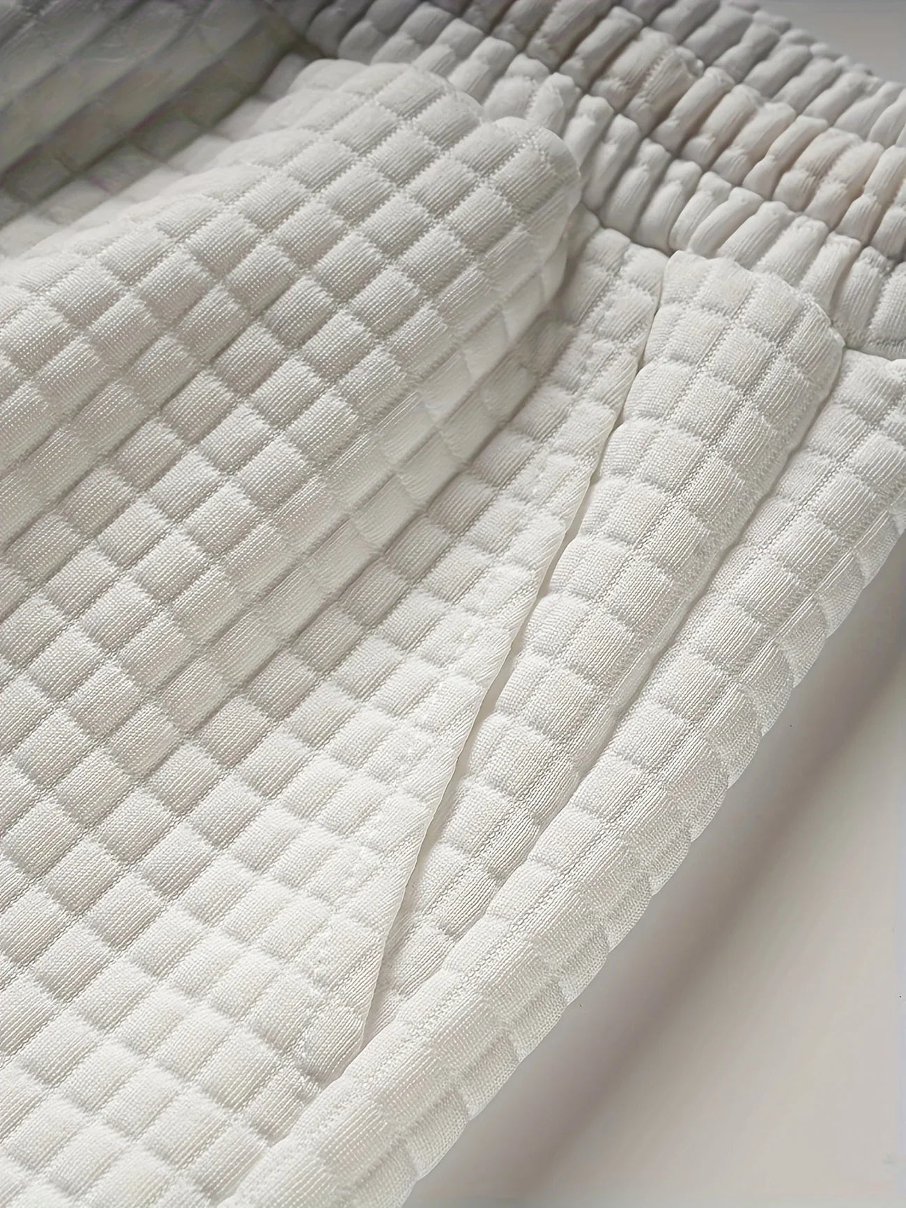 ✅モダンなデザイン: ニキフォール 呼吸可能なドローストリングウエスト ショートパンツは、スタイルと快適性を両立させた独自のテクスチャードパターンが特徴です。クリーンで構造的なデザインは、目立つ存在感を演出しつつ、カジュアルからスポーツまで幅広いシーンに対応可能です。ワッフルグリッドの表面が、視覚的なテクスチャでシルエットをさりげなく引き立てます。