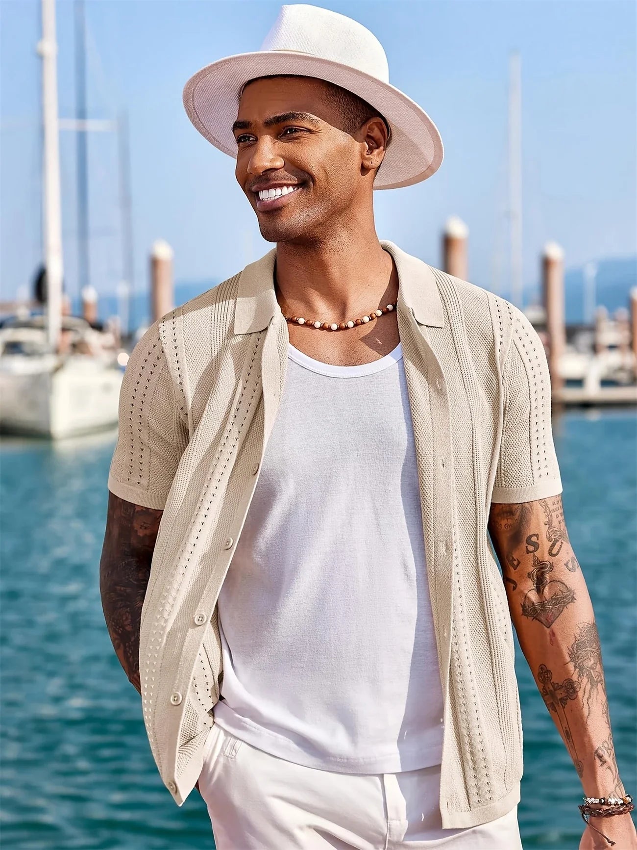 ✅汎用性の高いスタイル: このシャツは、海辺のラフなランチから高級感のあるカジュアルディナーまで、多様なシーンに対応します。リネンパンツやホワイトチノパンと合わせれば、シックなリゾートスタイルが完成します。タイムレスなデザインは、既存のワードローブとも相性抜群です。
