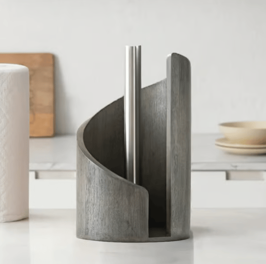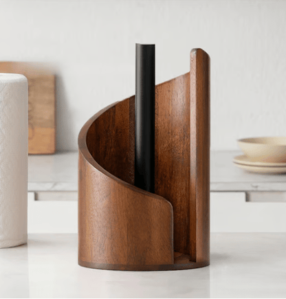安定性と優れたバランスを備えたベース:重みのある木製ベースが、使用中もホルダーをしっかりと固定します。素早く紙を引き出したり、ロールを交換したりする際にも倒れにくく設計されています。この安定性は、長期間にわたり安心感と信頼性の高い性能を提供します。設置した場所に確実に留まります。