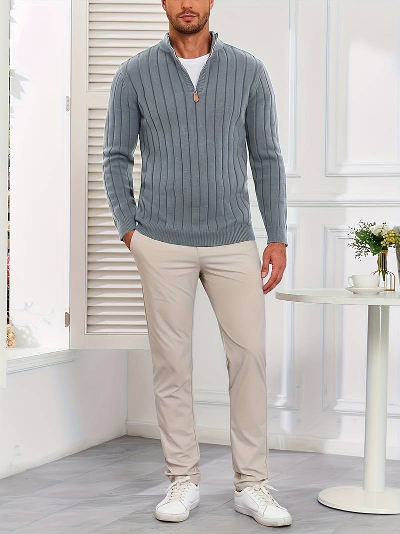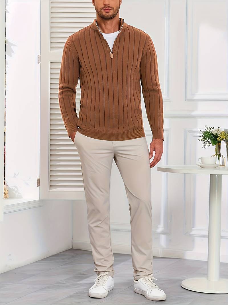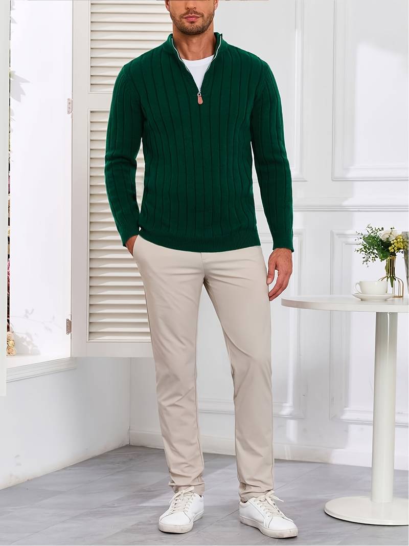 ✅調節可能な快適さを実現するハーフジップカラー:ジップアップカラーで通気性と保温性を自在にコントロール。閉めれば保温性アップ、開ければリラックススタイルに。クラシックなニットデザインにモダンなアクセントを加えます。機能性とスタイリッシュさを兼ね備えたディテール。