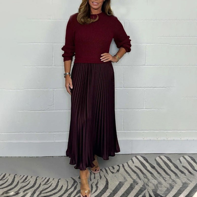Yennefer - 優雅でスタイリッシュなプリーツドレス(ラウンドネック)